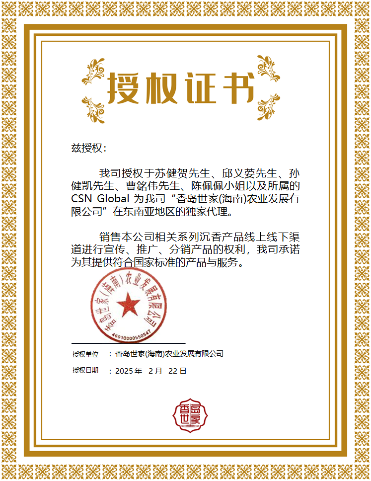 香岛世家(海南)农业发展有限公司专注沉香全产业链运营,涵盖种植、结香、加工、销售、投资等业务。我们拥有1000亩现代化沉香种植基地,率先采用 【“一树一证”+ 区块链技术】,推动沉香产业数字化转型。我们主要通过品牌授权、代理合作、种植投资,打造沉香行业领先的生态系统。