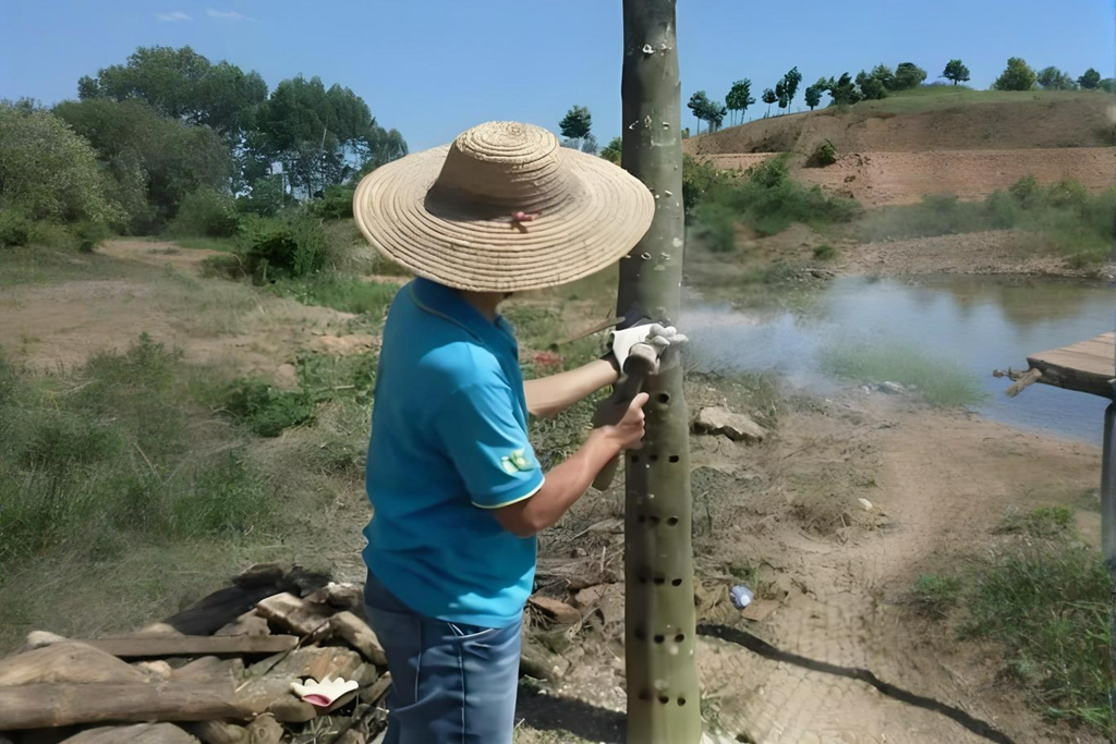 在树龄3–5年后,于树干精准凿孔,封口后诱导树脂分泌,形成稳定且高质量的结香结构,是当前商业化种植中最有效、最安全的方式之一。